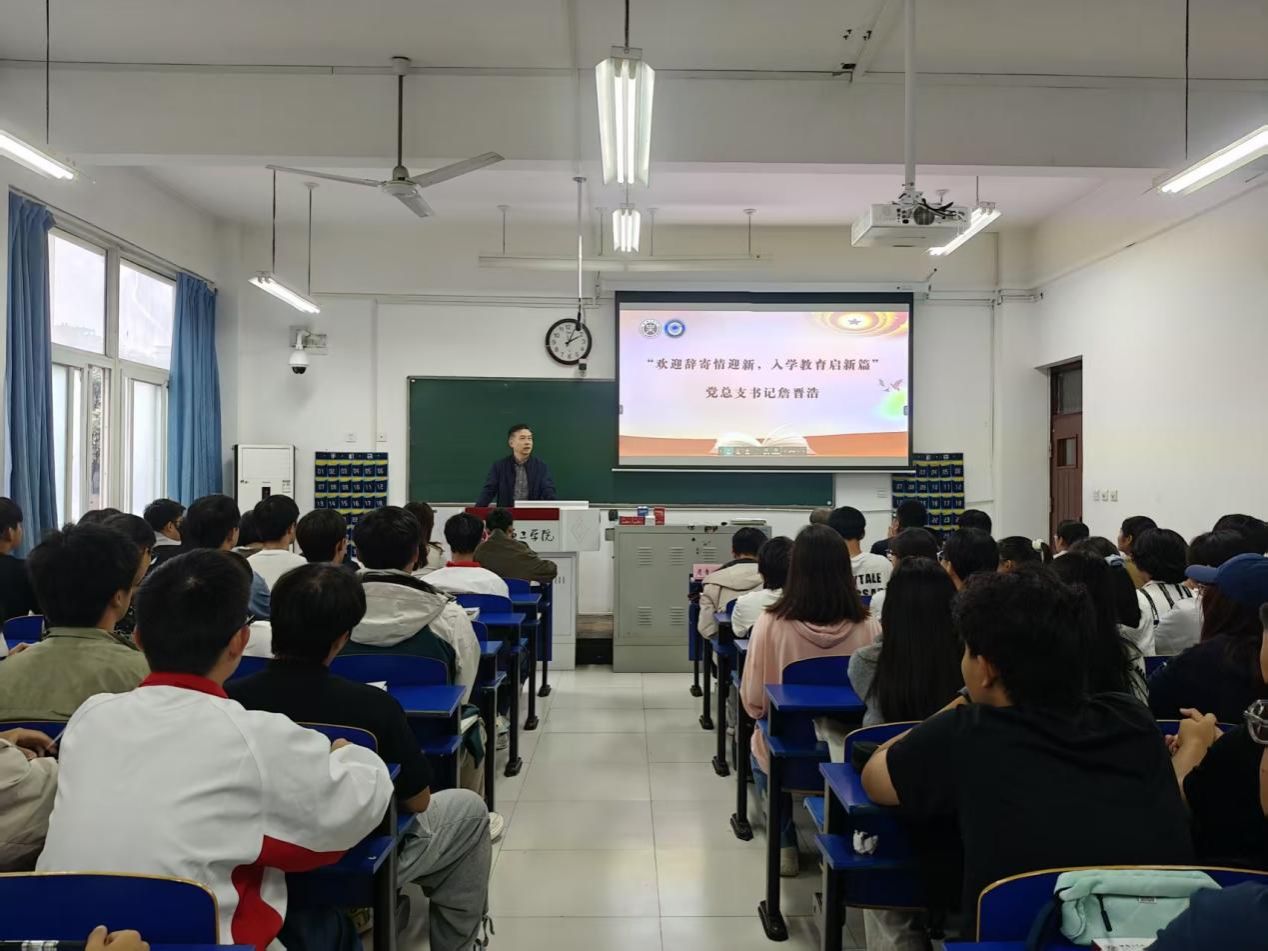 会议伊始,党总支书记詹晋浩致欢迎辞。他强调,新生要珍惜大学时光,既要专注学业、夯实基础、也要积极实践、锤炼创新与协作能力,同时期待大家以饱满的热情和坚定的意志,在校园中书写属于自己的精彩篇章。