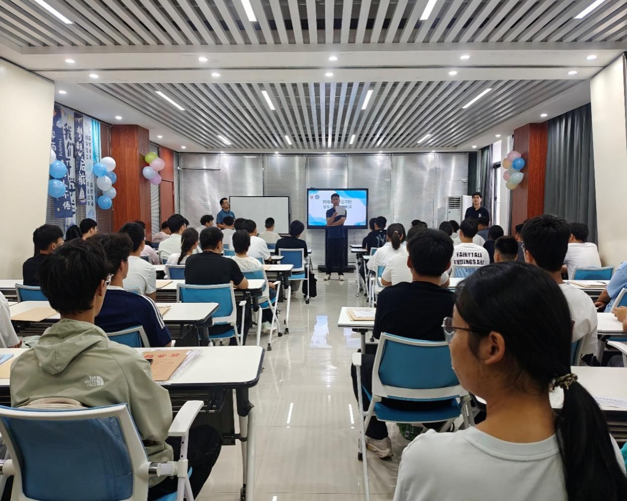 班会上,郭政良首先强调了国家学生资助工作的重要性,传达了“不让一个学生因家庭经济困难而失学”的坚定承诺。同时,从家庭经济困难学生认定工作流程到高校助学贷款的政策解读,从校内励志奖学金的激励机制到勤工助学岗位的申请方式,全方位、多层次地为学生梳理了资助政策体系。